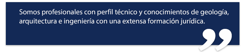 Ser asesorado por un profesional con perfil técnico y conocimientos de geología, arquitectura e ingeniería con una formación jurídica, favorecerá la defensa de sus intereses. Es posible encontrar excelentes abogados y peritos, pero muy difícil encontrar a alguien con ambos perfiles y con una amplia experiencia profesional en dichos campos.